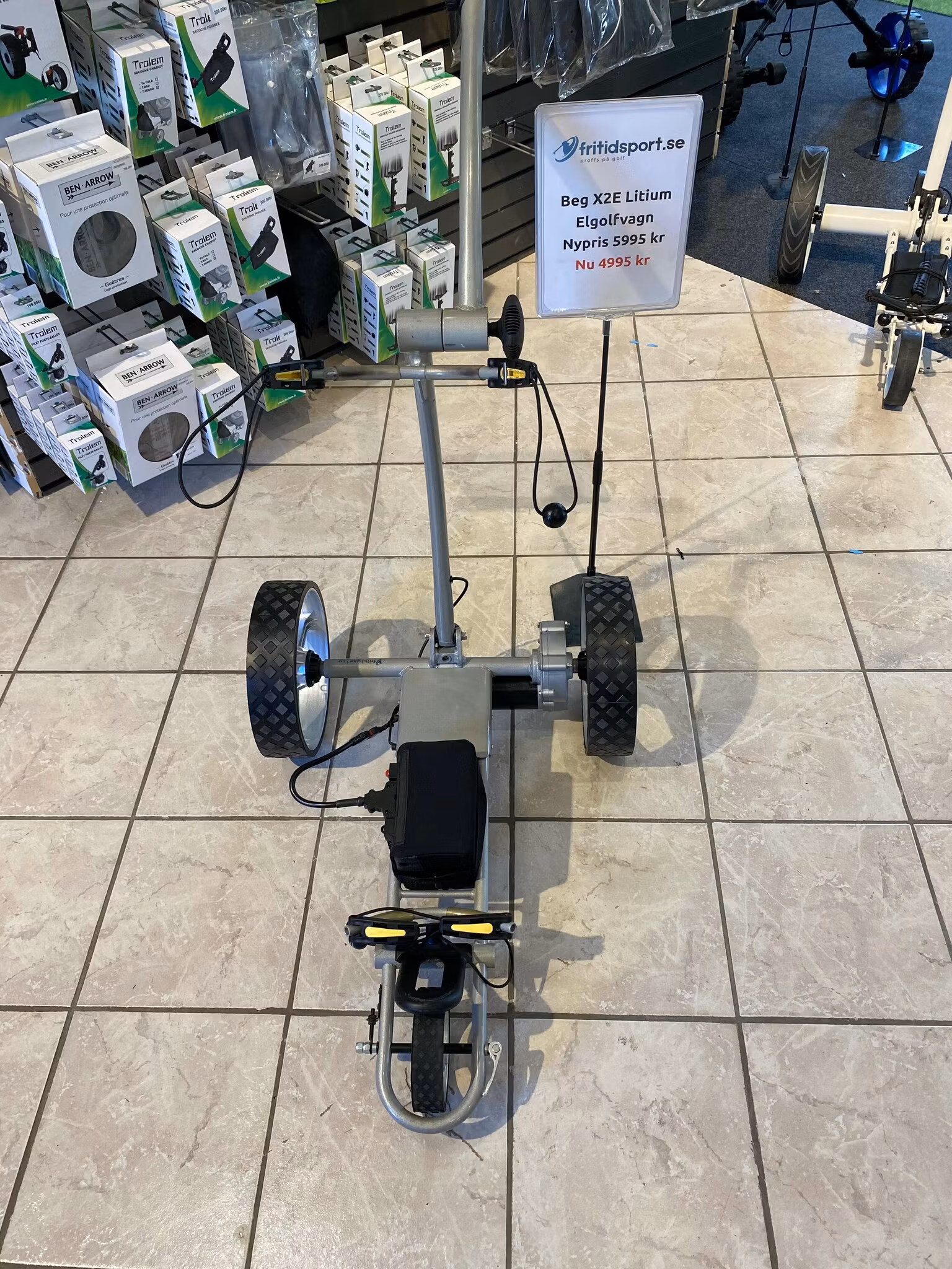 H&F X2E Litium är en enklare elgolfvagn i smäcker avskalad design. Den har en låg vikt tack vare aluminiumram och litiumbatteri. En populär vagn som har frihjul och därför rullar mycket lätt.