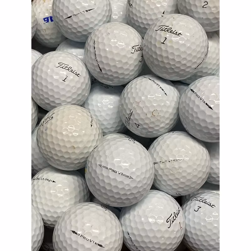 En mix av Titleist Pro V1x i olika årsmodeller från 2017-2020. Begagnade golfbollar bärgade från vattenhinder. Reklamlogotyper, tuschmarkeringar, vissa missfärg