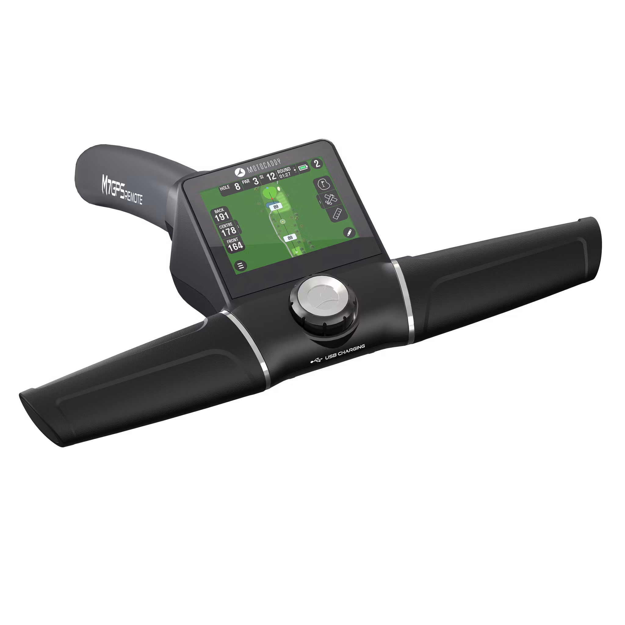 Den högteknologiska GPS-fjärrkontrollen levererar snabb och exakt GPS över mer än 40 000 banor världen över, visas på en kristallklar 3,5-tums pekskärm. Dess omfattande uppsättning innovativa funktioner inkluderar Bluetooth®-smartphone-aviseringar, supersnabba Wi-Fi-uppdateringar trådlöst och gratis livstidsåtkomst till GPS-kartläggning och prestationsmätning för hela hålet. Ta kontroll med den nya laddningsbara USB-C-fjärrkontrollen som ger ultraresponsiv 360° fjärrnavigering, medan dubbelt kontrolläge låter dig direkt växla till handtagskontroll när du så önskar. Drivs av ett CLICK 'N' CONNECT® kabelfritt ULTRA-litiumbatteri och dubbla tysta 230W-motorer, M7 GPS Remote är konstruerad för terrängprestanda. Automatisk nedförsbackeskontroll upprätthåller en jämn hastighet i nedförsbackar, adaptiv terrängstabilitet förbättrar spårningen rakt fram och robusta terrängdäck kombinerat med 360° roterande dubbla framhjul för enastående stabilitet och manövrerbarhet. Ett infällbart tippskydd bakhjul sitter kvar för sömlös hopfällning.