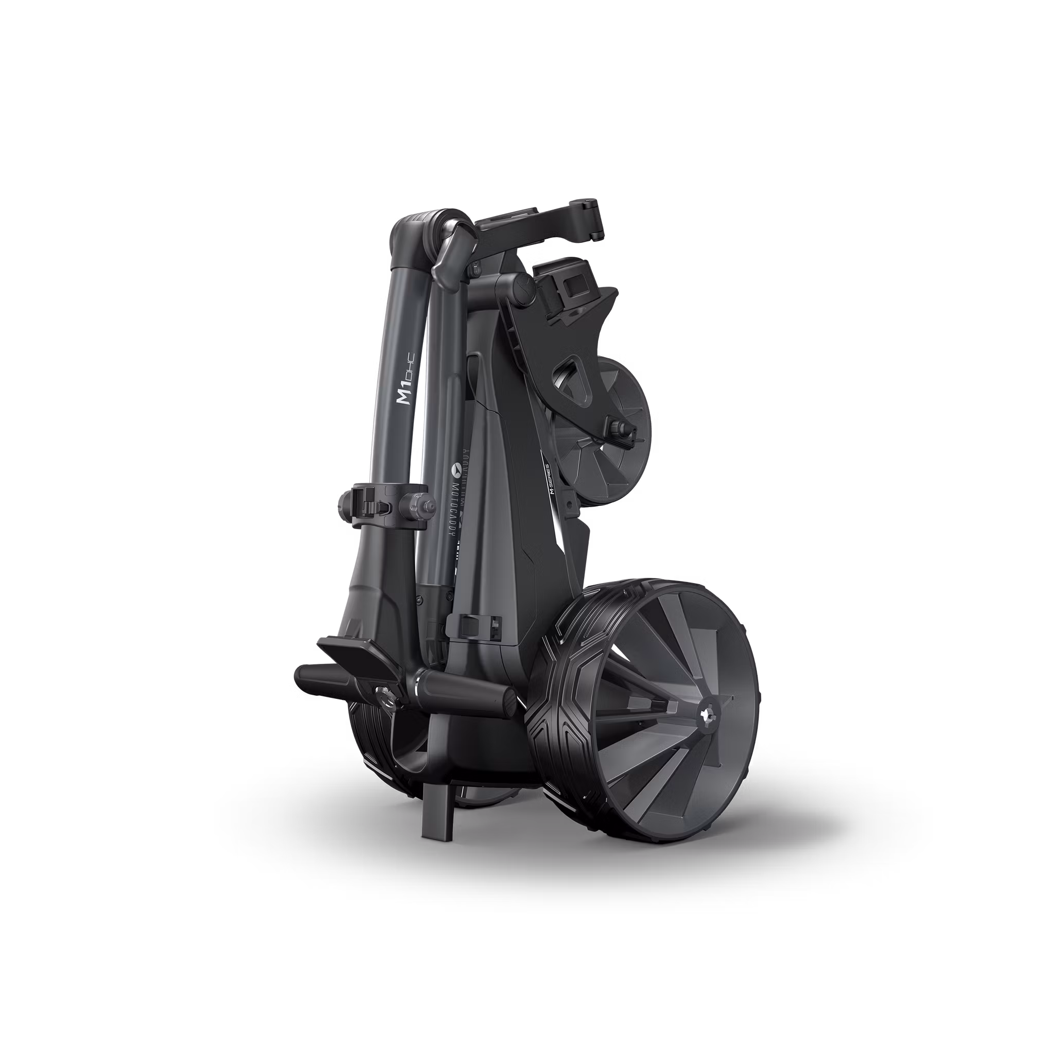 M1 DHC exceptionell prestanda med pålitlig kraft när du behöver det. M1 DHC drivs av ett revolutionerande högkapacitets CLICK 'N' CONNECT®-litiumbatteri med patenterad automatisk frånkoppling och popup-laddningsport, och har även automatic Downhill Control (DHC)-teknik för att reglera hastigheten i nedförsbackar för fullständig handsfree-kontroll. Detta fungerar i kombination med robusta terrängdäck och en elektronisk parkeringsbroms för att hålla vagnen säkert på plats i både uppförs- och nedförsbackar medan du slår ditt slag.