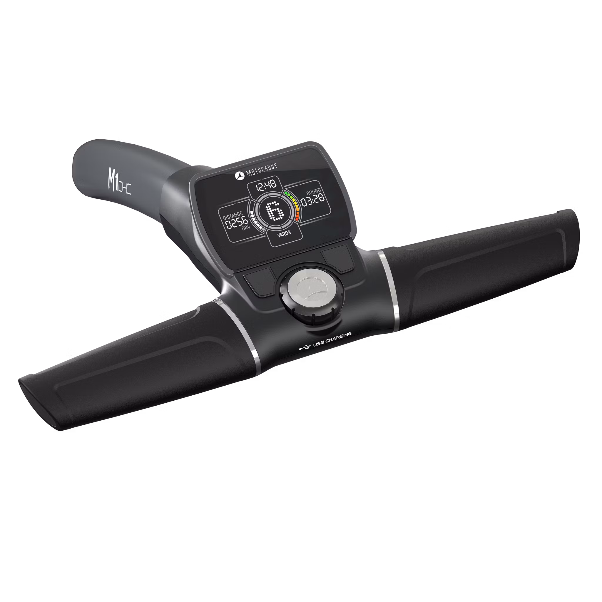 Den helt nya 2026 M1 DHC är världens enklaste kompakta vagn att använda, med enkel ihopfällning, en uppgraderad 2,8-tums LCD-widescreen-skärm och nio hastighetsinställningar för att matcha din gångtakt. Dess moderna, bilinspirerade styling inkluderar sportiga 10-ekrade fälgar, neutral finish och omdesignade handtag, medan den fantastiska displayen ger bekväm åtkomst till klocka, rundtid, tre distansmätningar (körtid, runda och livstid), plus den nya Cartlock-säkerhetskoden som skyddar din golfvagn från blivande tjuvar.