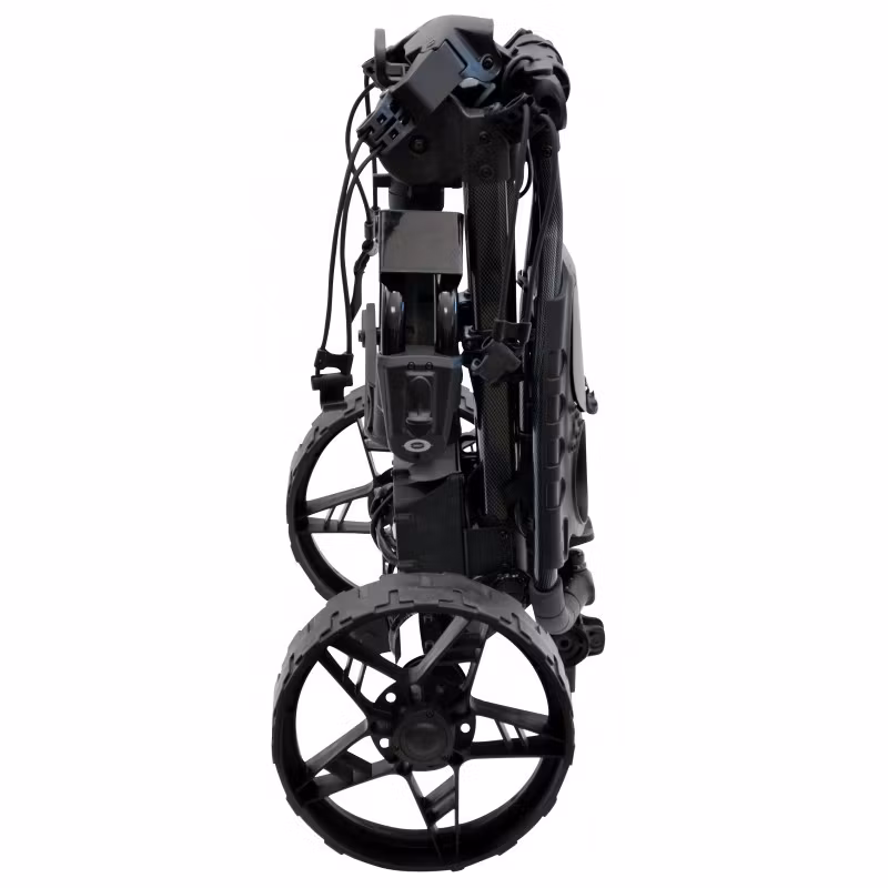 Trolem T.Zendo Litium, DHC har en snygg, sportig design och kan enkelt fällas ihop för att ta mycket liten plats. Framhjulet kan vikas in och bakhjulen enkelt plockas loss med en knapptryckning. Kombinerat med den starka lättviktsramen i aluminium gör detta din golfvagn lätt att transportera till och från golfbanan.