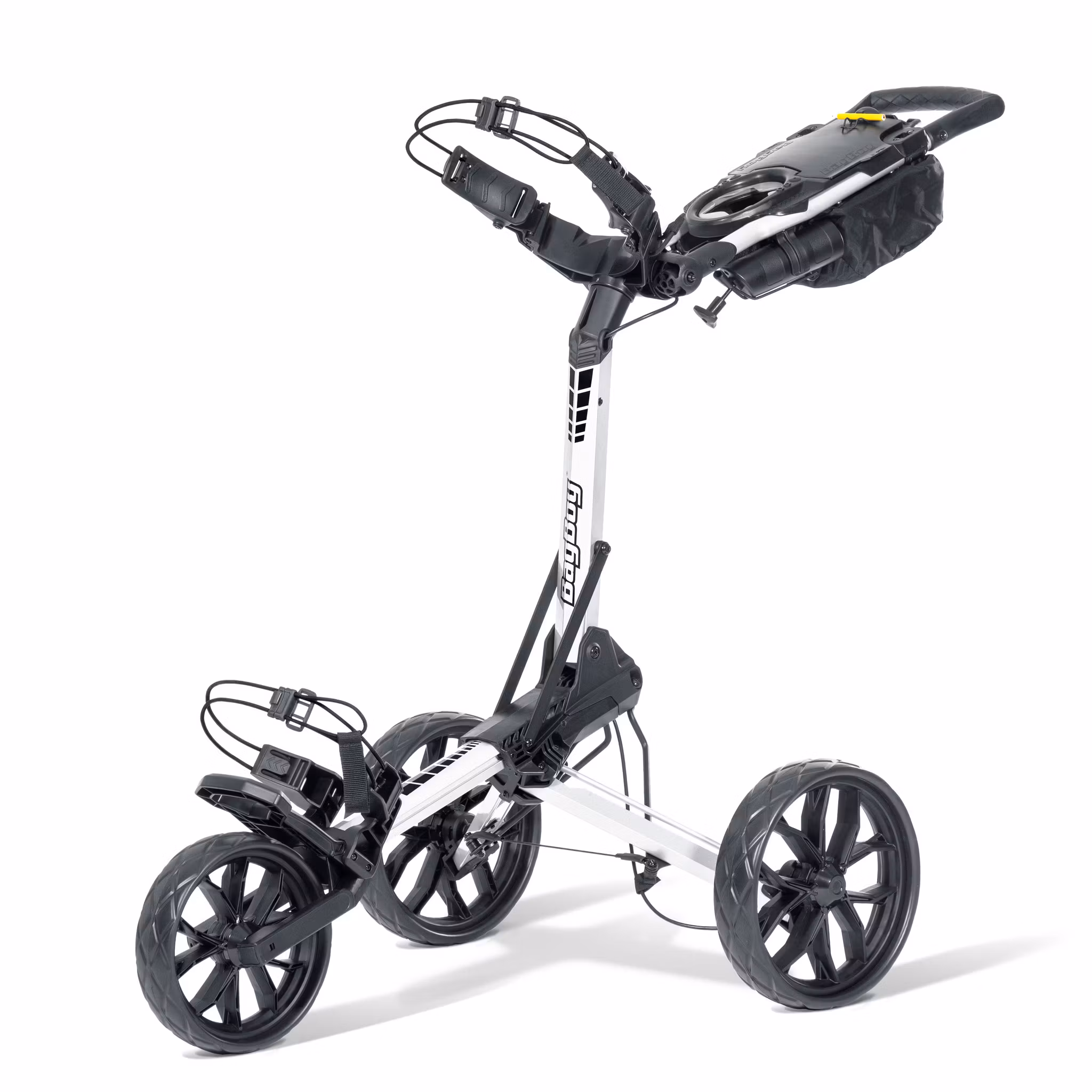 Bagboy Slimfold, en banbrytande innovation som tar portabilitet till nya höjder. Som världens minsta hopfällbara golfvagn har den designats med fokus på kompakt