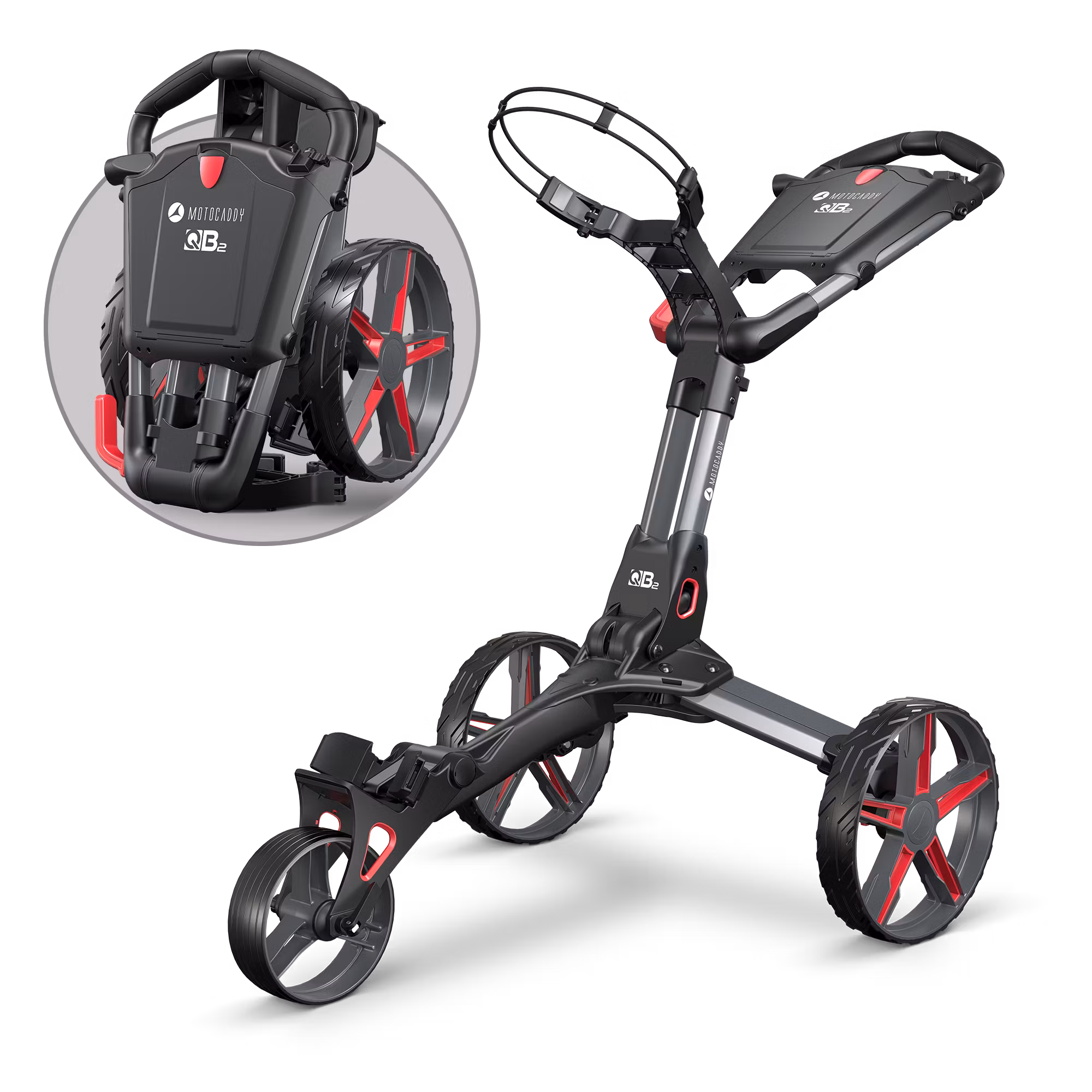 Motocaddy QB2 Push Cart kommer att göra din tid på banan enkel och njutbar. Med en ultrakompakt hopfälld storlek som är över 20 % mindre än Motocaddy CUBE,