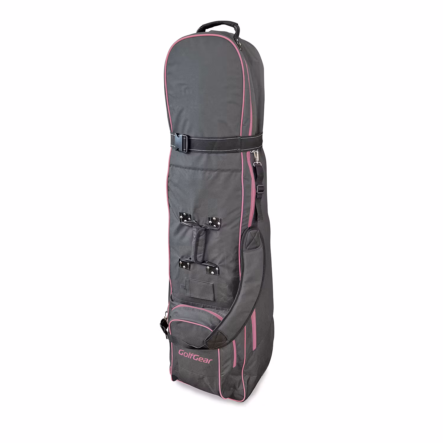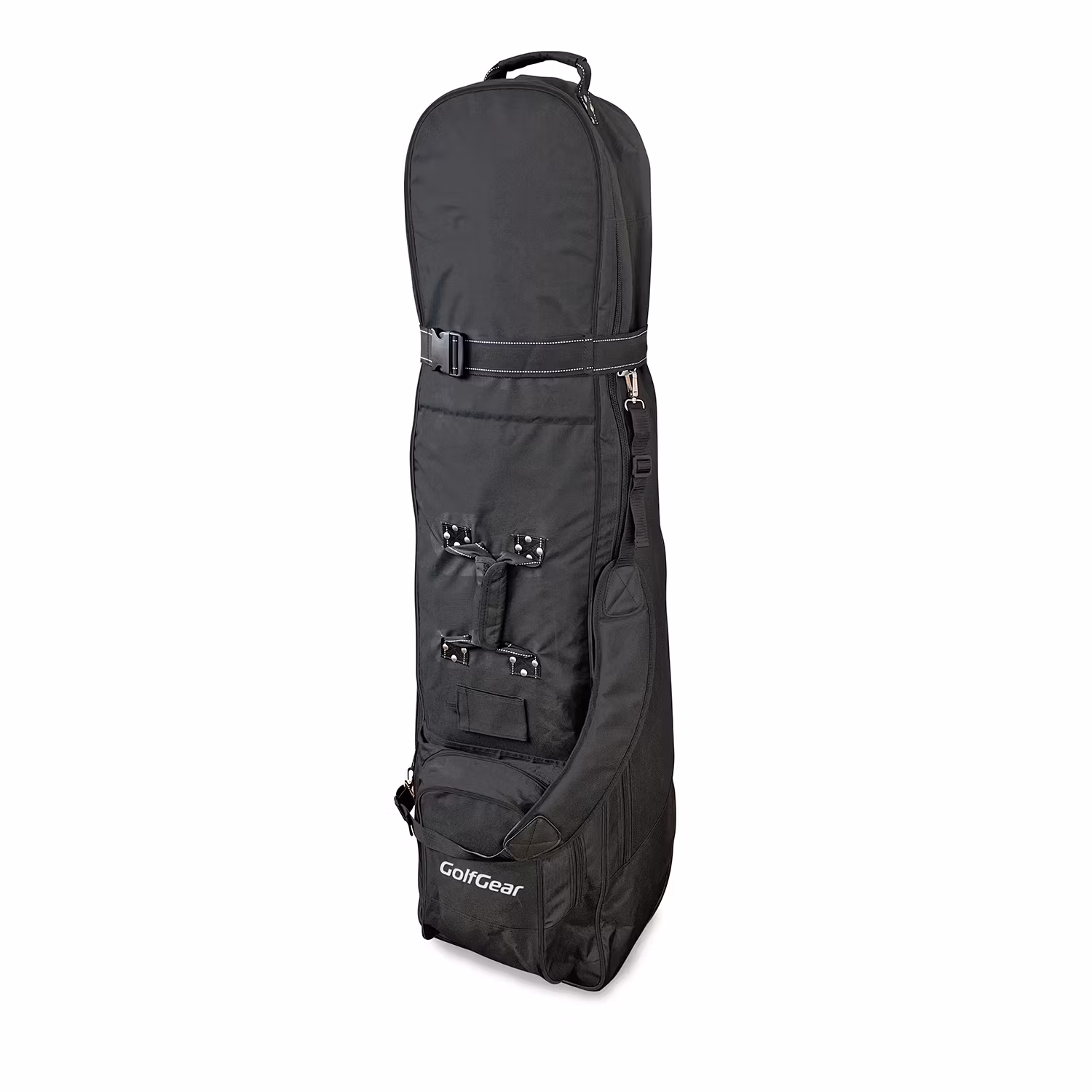 Resefodral av bästa kvalitet med premium Inlines-hjul. Tillverkad i mycket slitstark nylon och med kvalitetskomponenter rakt igenom. Extra vadderad topp samt förstärkning i botten för att skydda din golfutrustning och göra din resa bekvämt och enkelt. Kraftigt handtag på mitten och i toppen av resefodralet, även ett axelband så den är lika smidig att bära som att rulla. Du har ett extra utvändigt fack för skor, kläder eller bollar samt en ficka för namn och adresslapp.
