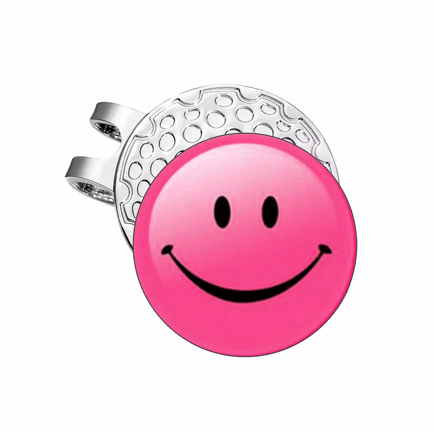 Cap Clip-Pink Smiley markeringsknapp som fästs på kepsen för enkel åtkomst. Markeringsknappen fästs med en magnet.