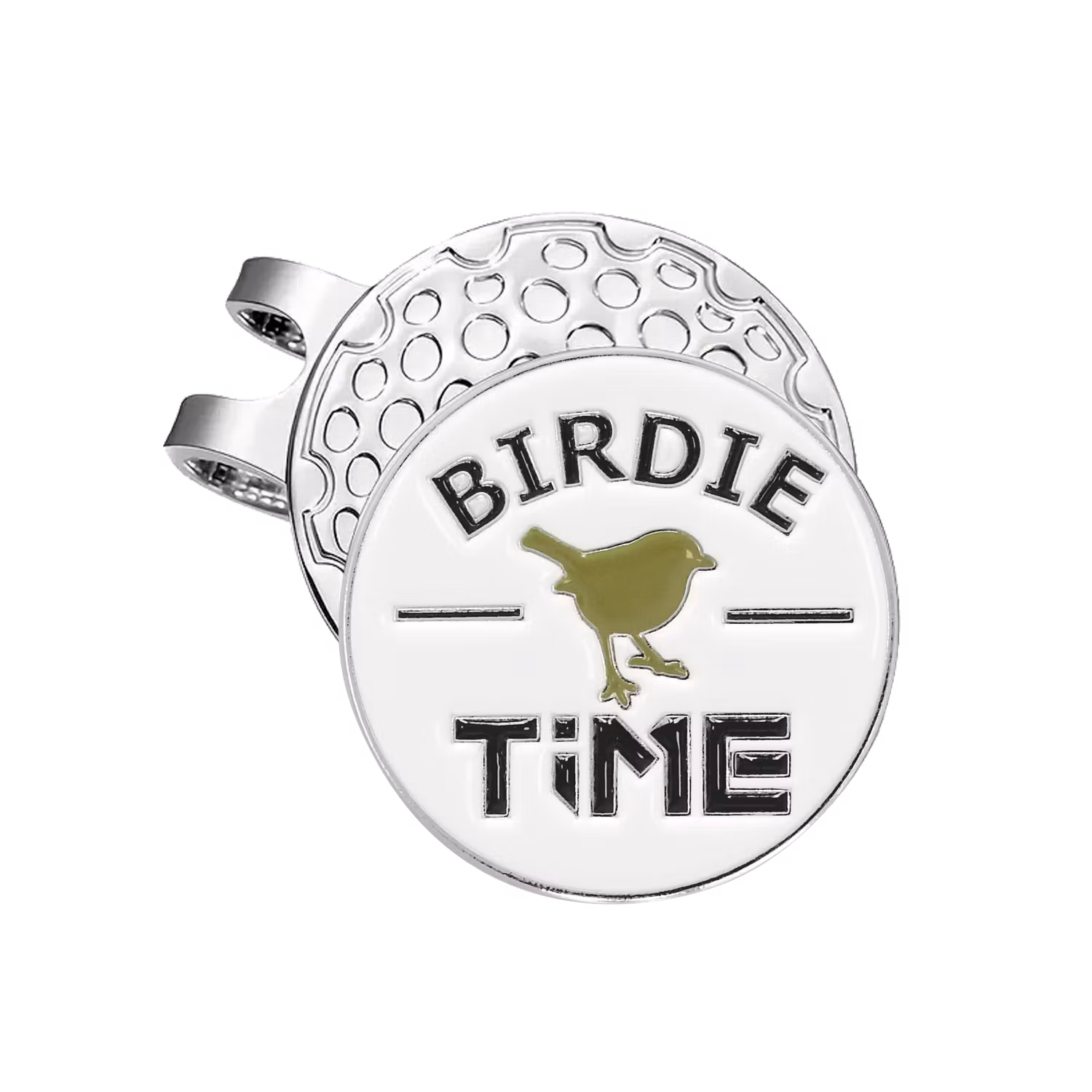 Cap Clip- Birdie Time markeringsknapp som fästs på kepsen för enkel åtkomst. Markeringsknappen fästs med en magnet.
